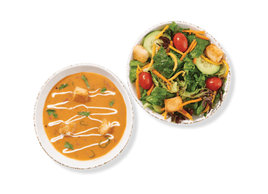Large Pair #1 Tomatoe Basil Soup w/ Newks Club, #2 Ceasar salad w/ Chicken Bacon Club along with your sweet pickles, roasted garlic, peppers etc. Food was excellent, chicken great flavor and tender. Tomatoe basil Never disappoints. Clean, staff super sweet and polite.